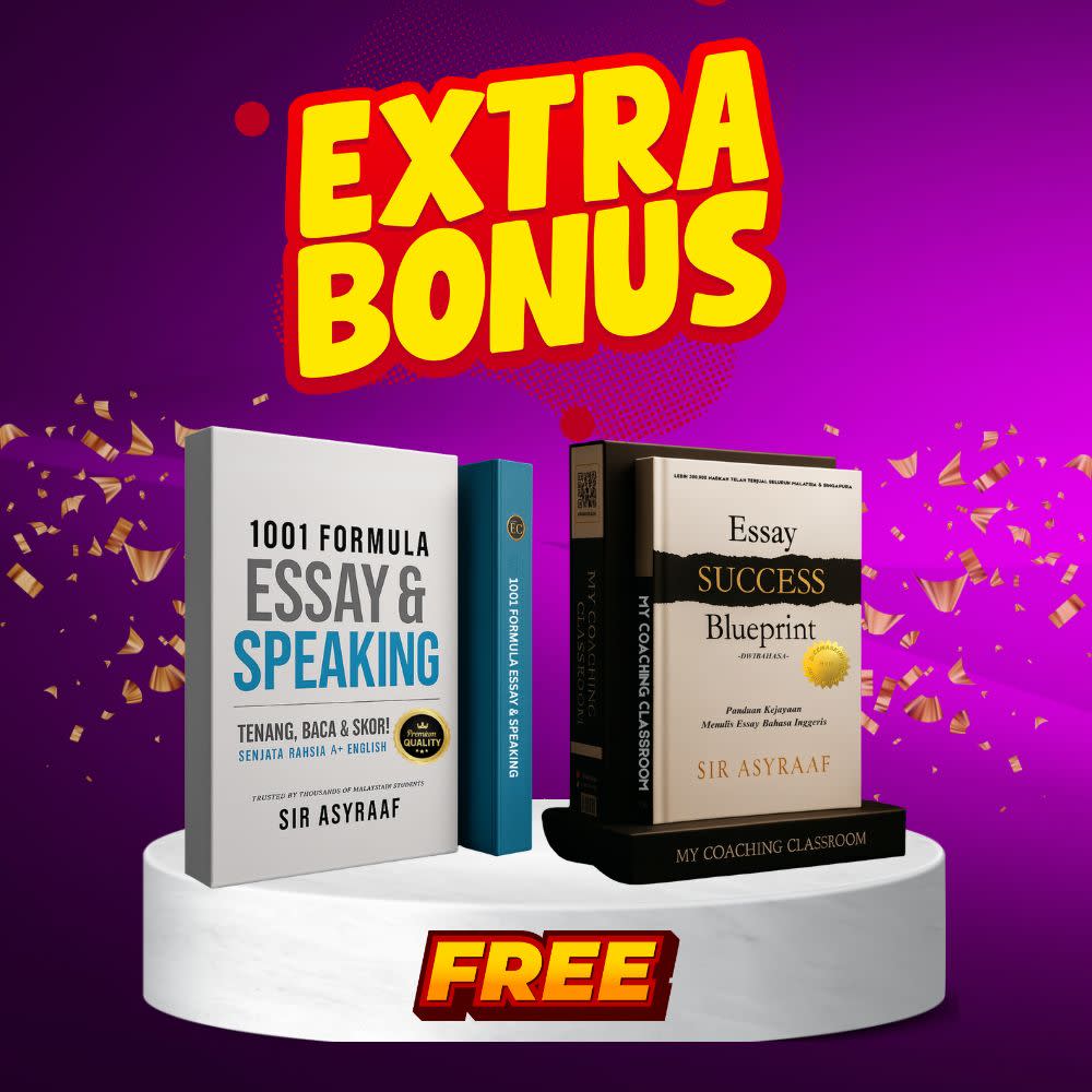 Dengan pendekatan dwibahasa english to malay, pembelajaran jadi lebih mudah difahami — sesuai untuk pelajar yang sering stuck idea, lemah grammar atau ingin hasilkan ayat high band.