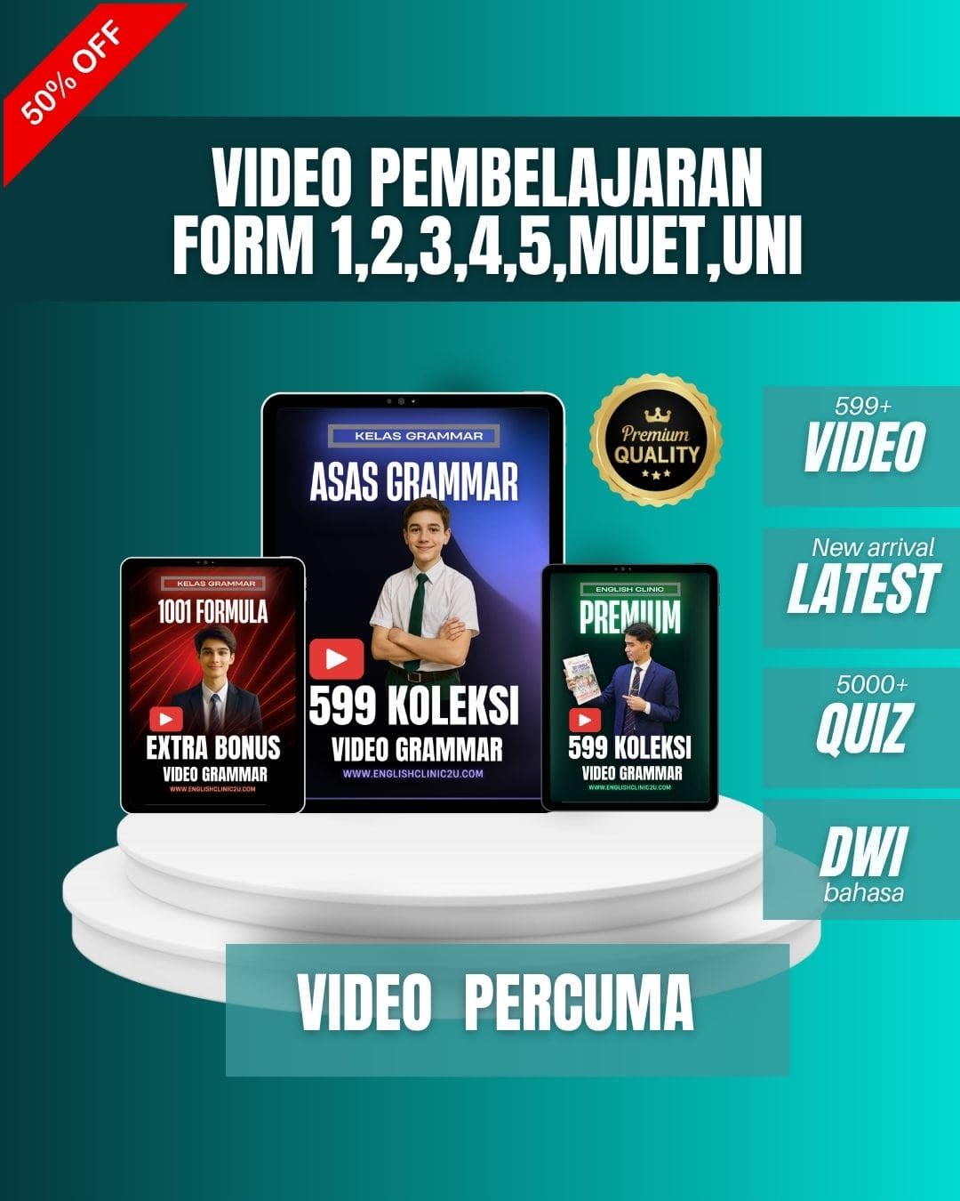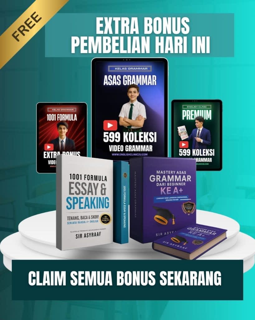 “Pakej Lengkap English Clinic – Buku + Video + 5 Bonus Premium, Semua Bawah RM100 Sahaja”